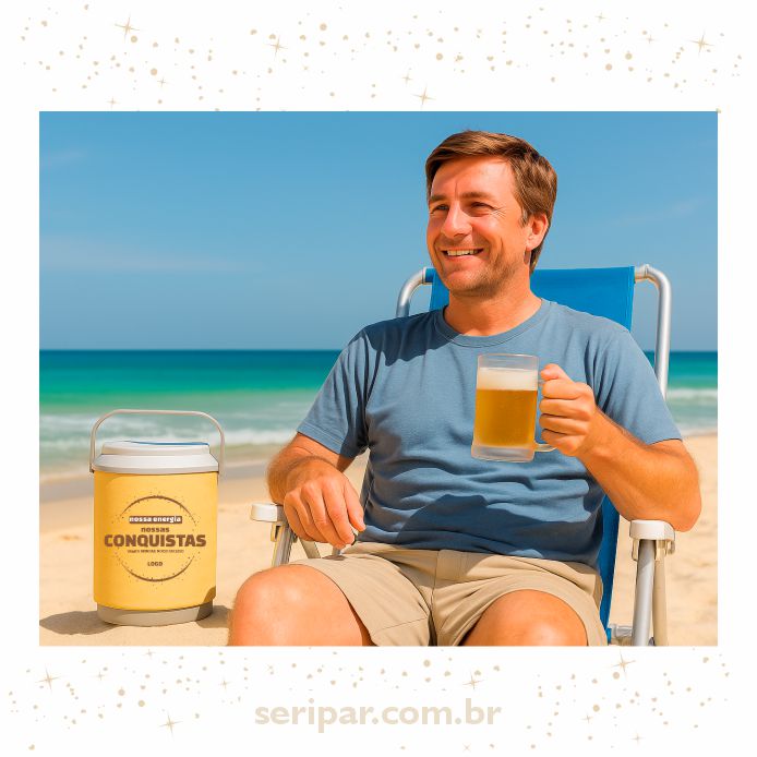 Kit composto: Cooler térmico, formato latinha. Capacidade para 10 latinhas de 350ml. Caneca chopp Acrilica/gel de 400 ml. Embalagem para presente em non woven com Tag. Personalização Cooler 360 graus 4 cores, Caneca 1 cor.