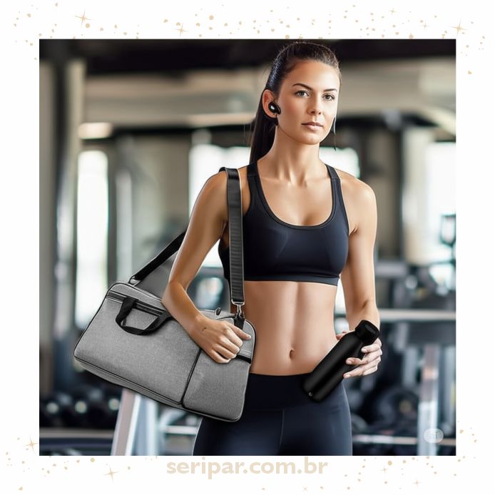 Kit composto: Mala esportiva em Polyester , com bolso frontal, alças de mão e ombro, no tamanho 270 x 480 x 260 mm. Garrafa aluminio 600 ml. Fone de ouvido Bluetooth. Embalagem para presente em non woven com Tag. Personalização Mala, Garrafa e fone em 1 cor.