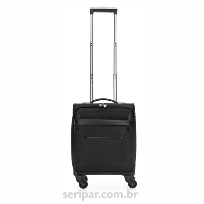 Mala de viagem com padrão para bagagem de mão. Confeccionada em nylon de alta qualidade, possui alça de mão emborrachada, puxador retrátil com botão acionador, sistema com 4 rodas multidirecionais, compartimento frontal de zíper com divisória para documentos e canetas e compartimento principal com bolso para notebook até 13.3 polegadas. Acompanha alças de nylon com encaixe de mosquetão (removíveis). Tamanho do produto: 48x35x23cm.